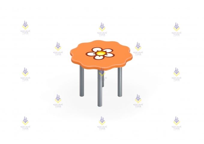 Стол для песочницы в форме ромашки спроектирован для того, чтобы на него дети могли поставить свои ведерки, лопатки, формочки, и на нем могли лепить «скульптуры» из песка. Яркие краски поднимут настроение малышам, а благодаря необычному дизайну столешницы, данный элемент станет украшением для всей детской площадки.