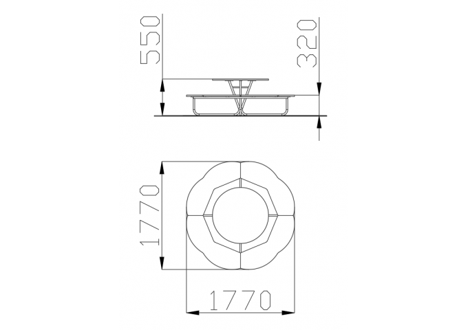 - Габаритные размеры изделия (Д х Ш х В): 1770х1770х550