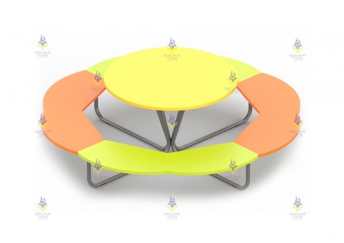 Чтобы детям было удобно на детской площадке стоит обратить внимание на столик «Солнышко». Это удобная модель, у которой предусмотрена как столешница, так и круговое сидение.