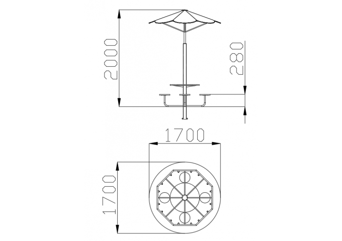 - Габаритные размеры изделия (Д х Ш х В): 1700x1700x2000