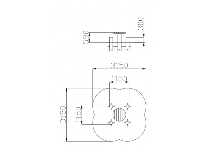 - Габаритные размеры изделия (Д х Ш х В): 1150х1150х500