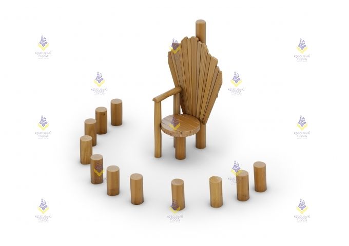 «Пир викингов» — это оригинальное стилизованное украшение для детской площадки. Оно представляет собой набор, в который входит основной стул, выполненный в стиле скандинавского трона, а также несколько отдельно стоящих деревянных элементов. Их также можно использовать в качестве стульчиков для детей.