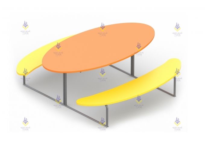 Стол со скамьями «Луна» хорошо подойдет для детской площадки. Эту конструкцию легко установить на месте, где дети могут заниматься творчеством и другими интересными делами.